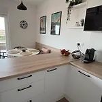 L'appartement dispose d'une cuisine équipée équipée d'un four et d'un lave-vaisselle.
